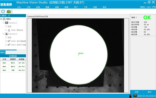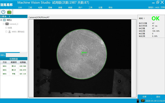 系統采用進口工業相機快速獲取產品圖像,通過圖像識別、分析和計算,輸出OK、NG結果及合格產品位置坐標,用于控制系統執行下一步動作。